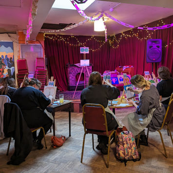 Don an apron, take a seat at an easel and follow my step-by-step guidance as we create art together. There is plenty of time to go at your own pace and there will be help on hand if you need it, it’s a perfect way to get into painting!